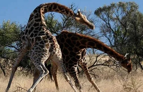 9. Самцы жирафов бьют самку головой о мочевой пузырь, пока она не помочится, а затем пробуют мочу на вкус, чтобы определить, овулирует ли самка