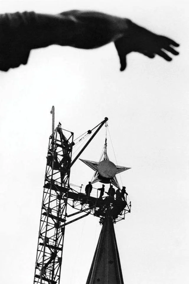 Подъем звезды на Cпacскую башню Kpeмля, 1935 год.