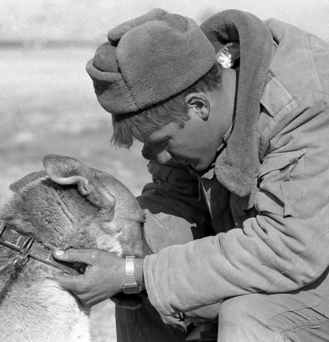 Воин-интернационалист прощается со служебной собакой. Афганистан, 15 февраля 1989 г.