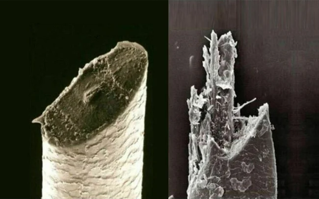 А вот эти фото покажут разницу между бритвенным станком (фото слева) и электробритвы (фото справа). Довольно наглядно, не так ли?