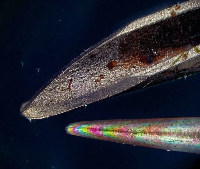 Все, что на первый взгляд кажется, острым, на самом деле таковым не является. Взять ту же иглу - оказывается, у нее довольно тупой конец. Особенно, если сравнивать с жалом пчелы. Если бы не зазубрины на последнем и яд, пожалуй, ее укол был бы куда менее болезненным, чем иньекция шприцем.