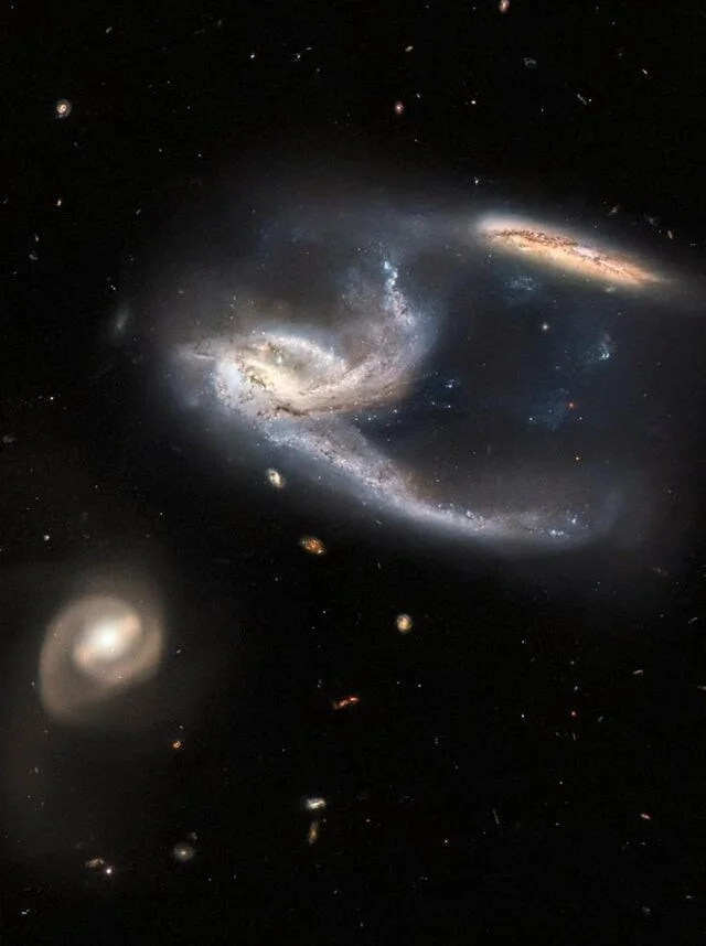 На снимке группа из трех галактик, известных под общим названием NGC 7764A. Они были сфотографированы космическим телескопом Хаббла с использованием двух широкоугольных камер.