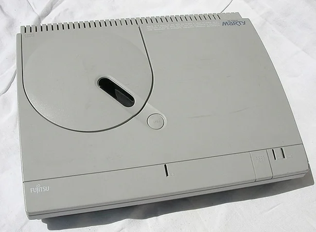 FM Towns Marty считается первой 32-битной приставкой в мире. Выпущена в 1993-м году фирмой Fujitsu. Является почти полностью совместимой с дисками компьютера FM Towns. Имеет не только СД-привод, но и дискетник. К ней также можно было подключить клавиатуру и мышку, и даже проапгрейдить её. Большинство игр с CD-Audio музыкой.