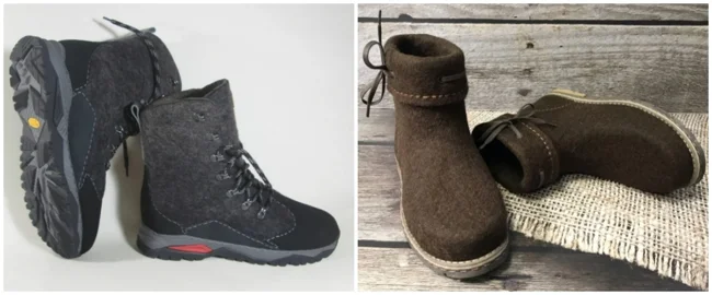 Внезапно, но да, это валенки. Валенки вот уже несколько веков греют наши ножки. Обувь из натурального войлока очень тёплая, удобная и стильная. Сейчас можно найти кучу разных валенок - от спортивных ботинок для мужчин, до элегантных сапожек для женщин.