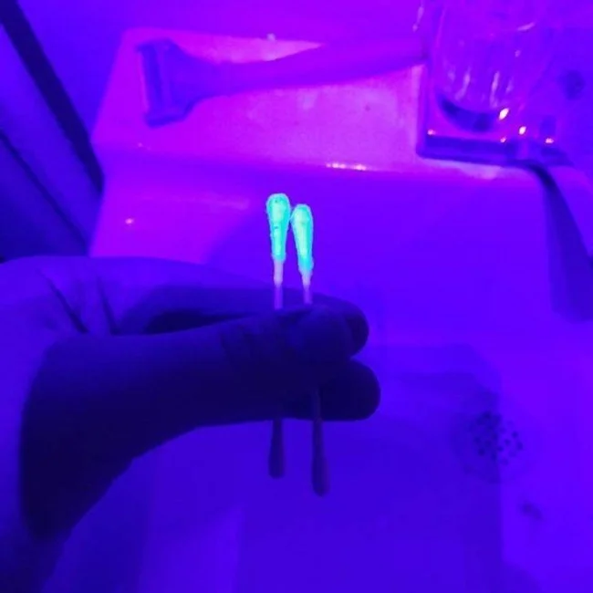 5. "Только одна сторона ватных палочек светится под лампой черного света"