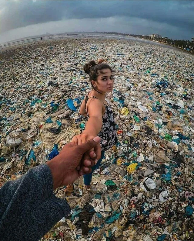 Романтическая сцена на фоне отходов человеческой жизнедеятельности.
