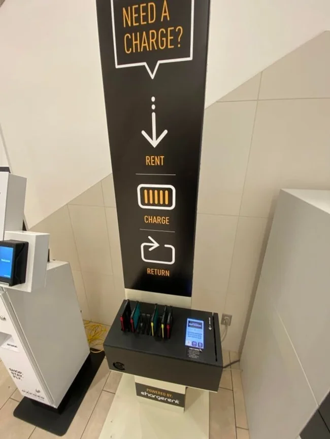 В торговом центре можно взять в аренду внешние аккумуляторы, чтобы зарядить телефон или другое устройство