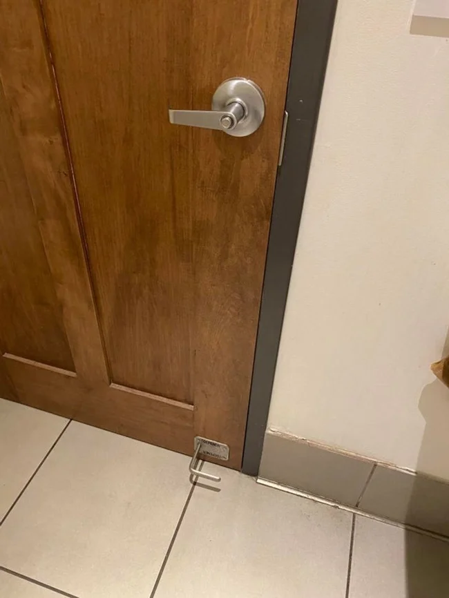 Специальный крючок на двери, чтобы можно было открыть ее ногой
