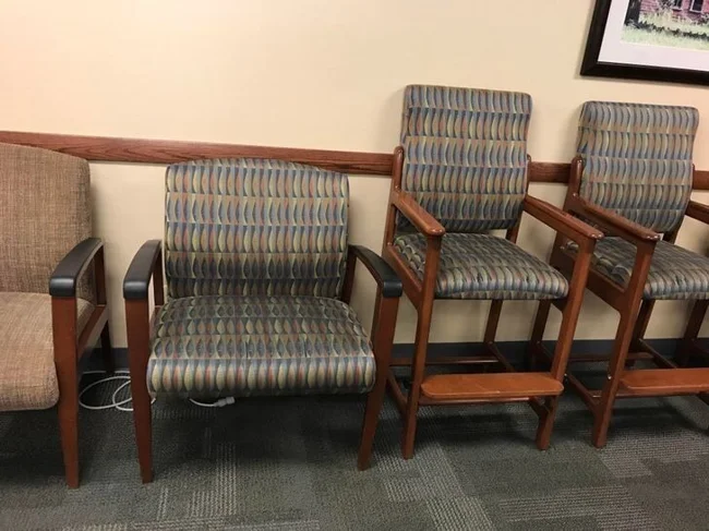 Некоторые стулья в больнице выше обычных, и предназначены для людей с двигательными проблемами