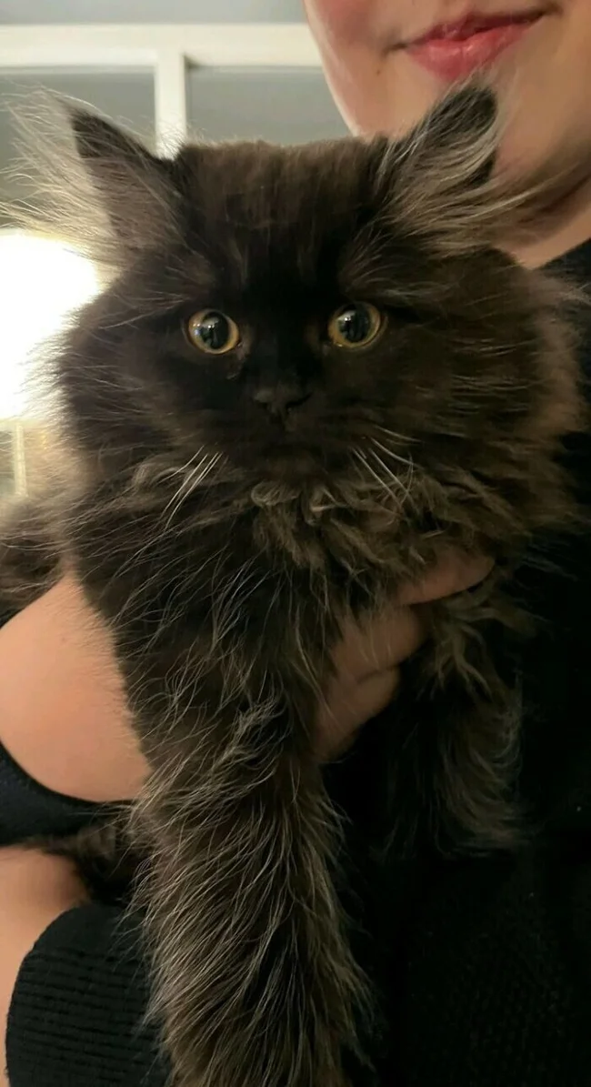 "Неделю назад мой муж отказывался заводить кошек. Недавно я уговорила его сходить на кошачью выставку с детьми.. Через 15 минут после входа на выставку, мы взяли этого малыша"
