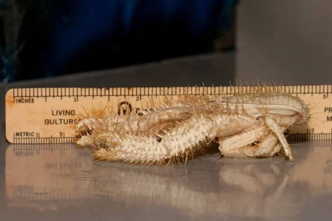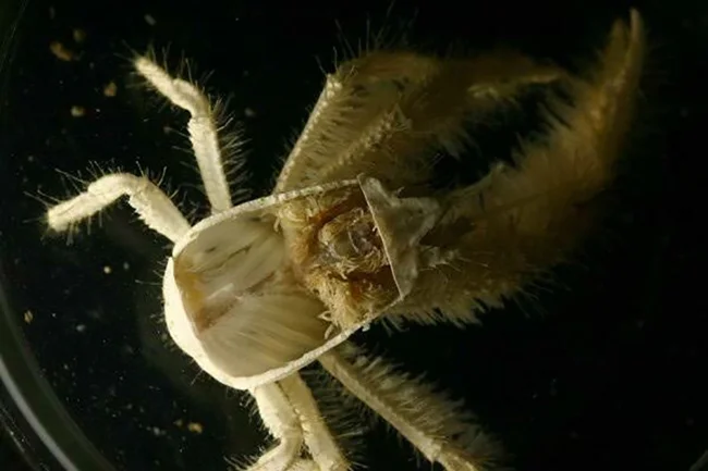 В щетинках на лапках живут бактерии. Они вылавливают токсичные вещества из воды и используют её в своём метаболизме. Ракообразному же достаётся чистая, насыщенная кислородом водичка. Лишь благодаря природному скафандру краб выжил в таких экстремальных условиях.