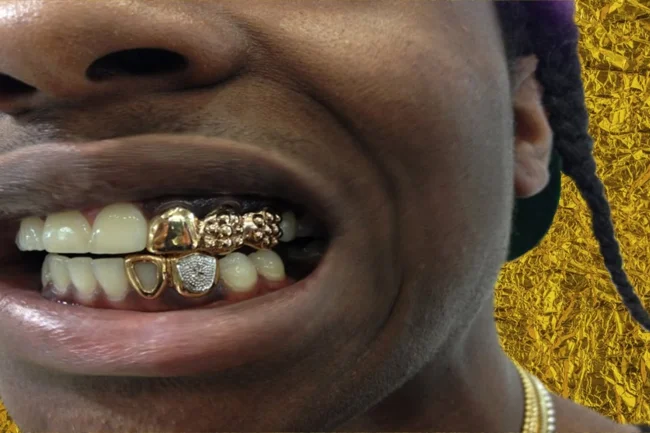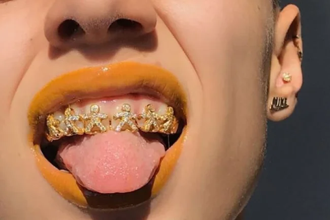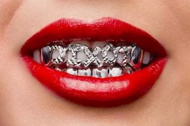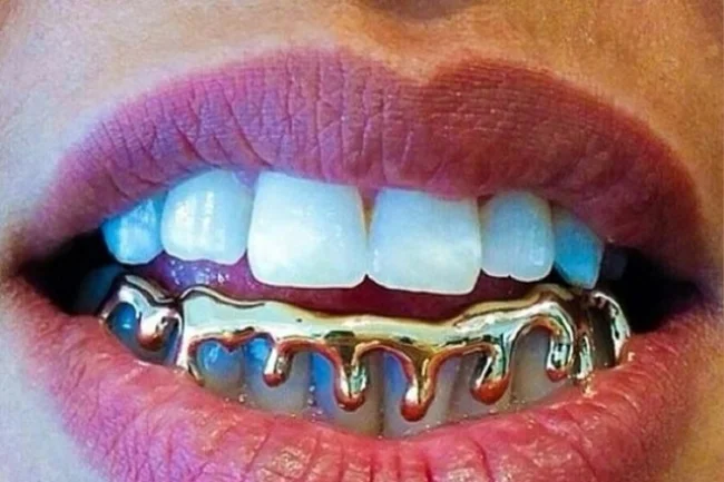 Есть и достаточно популярное украшение грилзы, которые представляют собой специальные накладки, изготовленные по слепкам зубов.
