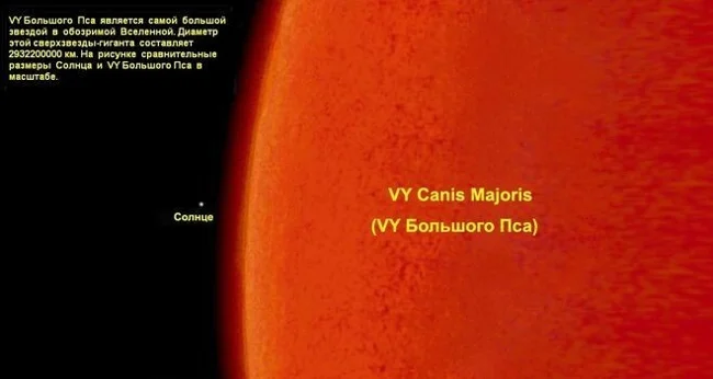 Самая большая звезда VY Большого Пса в миллиард раз больше нашего Солнца. ![]()