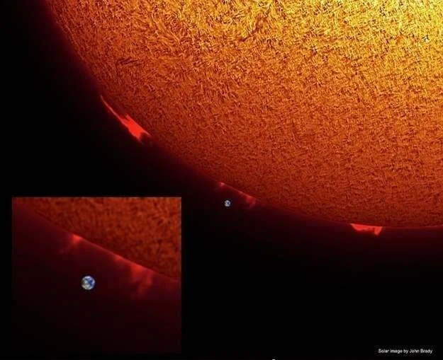 Вот размер Земли в сравнении с Солнцем, которое даже не помещается полностью на фотографии.