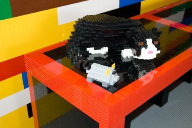 Каркас здания был сделан из дерева, остальное же, включая стены, было изготовлено из деталей конструктора. В этом доме было все: работающая ванна, душ, мебель и даже кошка, на все конструкции ушло более 3,3 миллиона деталей.