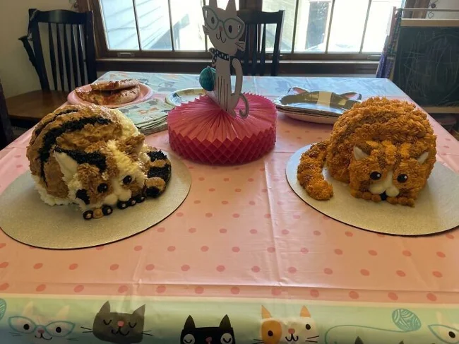 6. "Дочь хотела на день рождения торты в виде котиков. Я не профессионал, сделала что смогла"