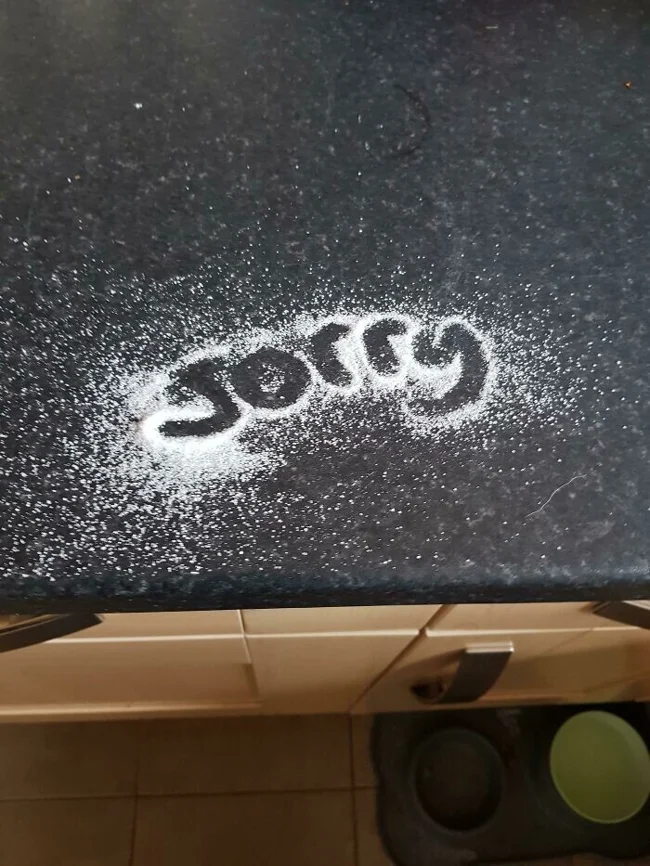 "Вместо того, чтобы убрать просыпанный сахар, мой бойфренд написал на нем это"