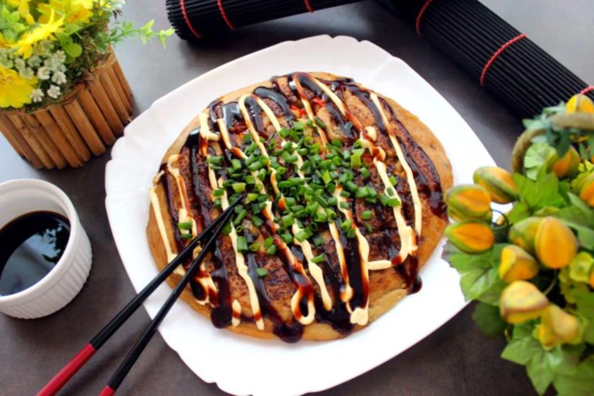 Например, окономияки, разновидность фастфуда из Японии, которое готовится на жидком тесте. В итоге получается лепешка небольшого размера, политая соусом и посыпанная тунцом.