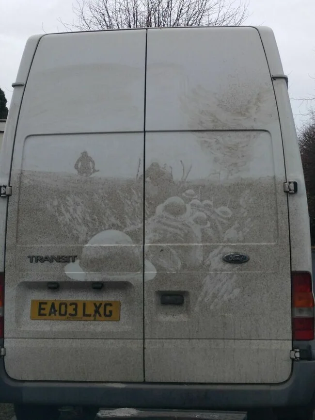 Кто-то нарисовал картину на грязном авто