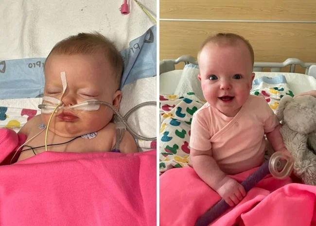 "До и после. Моя дочь поборола риновирус и бактериальную пневмонию. Мы чуть ее не потеряли. Но сейчас она дома, и полностью здорова"