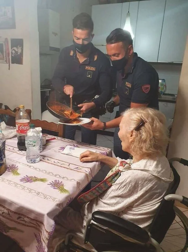 87-летняя женщина позвонила в полицию во Флоренции, Италия. Она сказала, что ей одиноко и она голодна. Вот результат