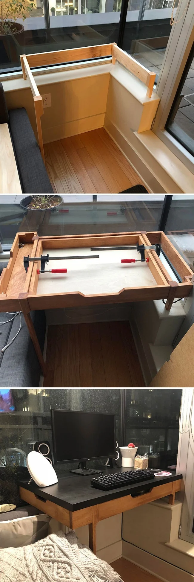 4. "Сделал для своей девушки письменный стол, встроив его в ее крошечную квартирку. Чтобы ей не нужно было работать за кухонной стойкой"