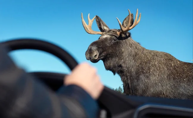 Из-за того, что у животины ноги от ушей, тело лося возвышается над салоном автомобиля. Поэтому при аварии животное полетит прямо в лобовое стекло.