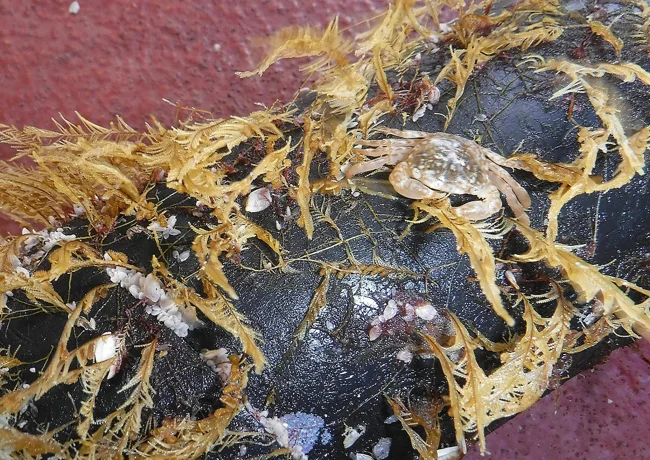 Краб и более мелкие организмы, живущие на каком-то мусоре