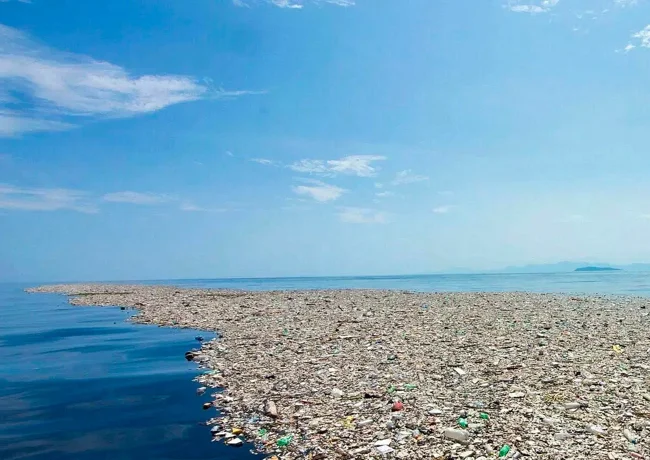 Такие фото мусорных островов обычно делают возле берега - затем пластик успевает разложиться до более мелких кусочков