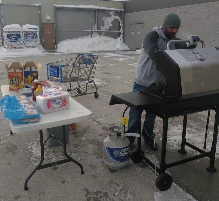 "После мощной метели, какой никто не припомнит в нашем городе, этот парень вышел на улицу и стал готовить еду для всех нуждающихся"