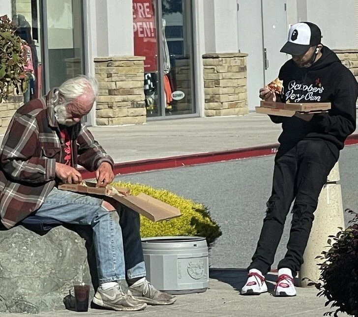 Парень купил пиццу для бездомного, и они вместе пообедали