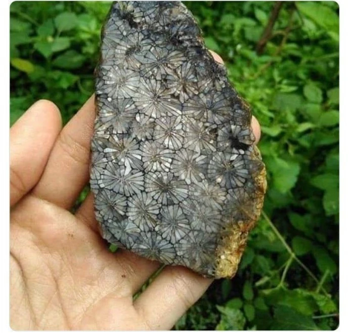 окаменевший в агате коралл сохранил структуру своих лепестков.