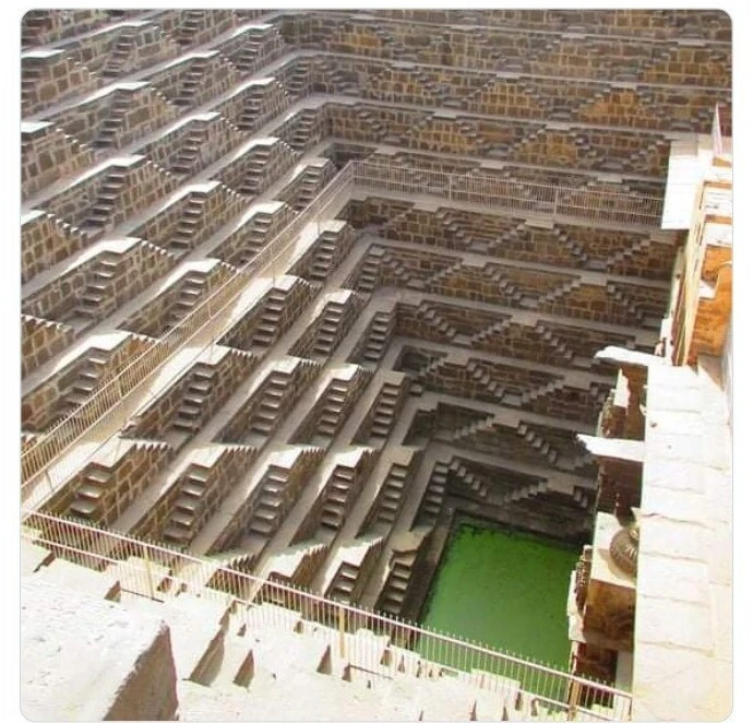 Ступенчатый колодец Чанд Баори находится в деревне Абганери в индийском штате Раджастан. Построенный в IX веке, он предназначался для того, чтобы дать доступ к воде как можно большему числу людей сразу. Это один из самых глубоких и больших колодцев в Индии: в нем 13 этажей, а чтобы спуститься к воде, надо преодолеть 3500 ступеней.