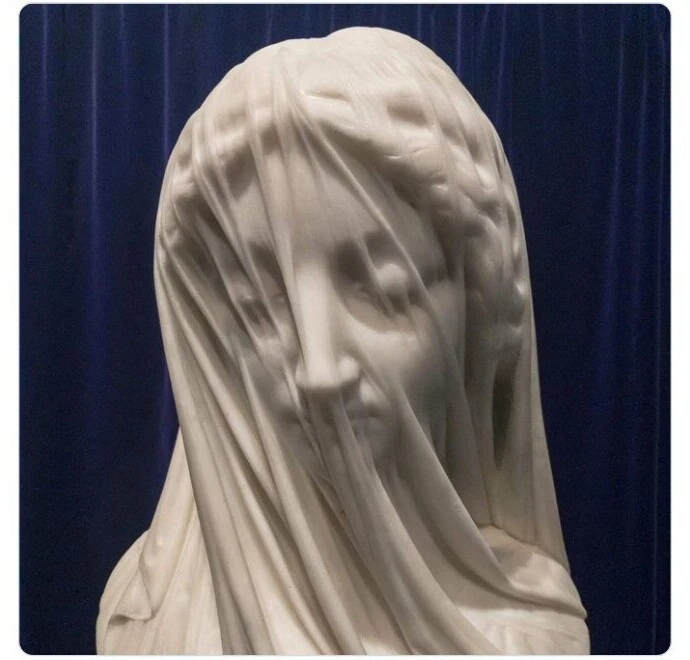 "Дева под вуалью" - скульптура Джованни Страцца (1918 - 1875) из каррарского мрамора, выполненная, предположительно, в 1850-х годах. Вуаль Марии кажется прозрачной - но она тоже сделана из мрамора.