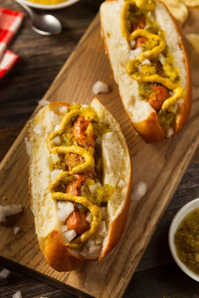 Классическим американским хот-догом считаются разрезанные с одного края булочки с вложенной туда сосиской, политые кетчупом или горчицей. Именно этот рецепт наряду с гамбургерами и чипсами стал одним из символов Америки.