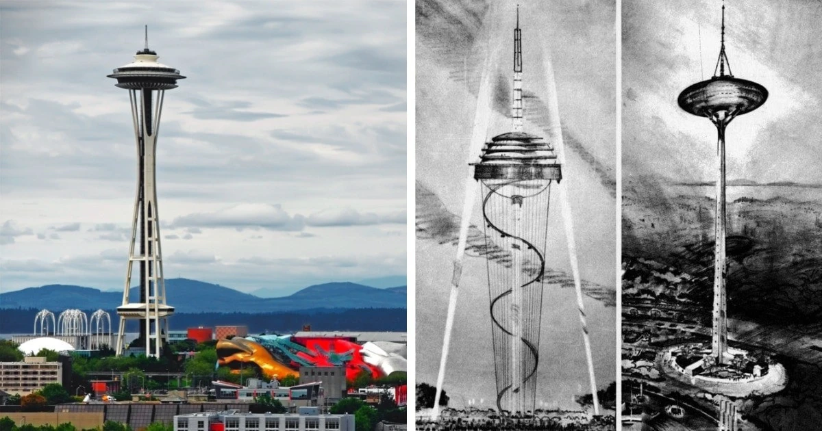 9. Несколько концептов башни Спейс-Нидл в Сиэтле, штат Вашингтон. Конец 1950-х, начало 60-х годов