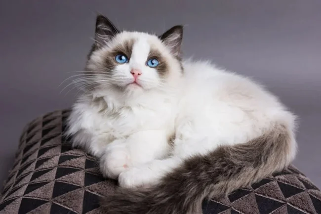 Особенность данной породы — балдежные голубые глаза и белые усы. Также имеет всего 3 окраса: колор-пойнт, перчаточный и биколор.