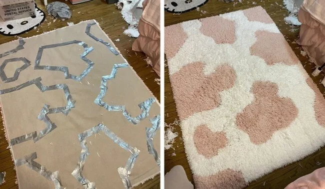 3. "Смастерила один коврик из двух, склеив куски скотчем потому что у меня нет денег на такой готовый"