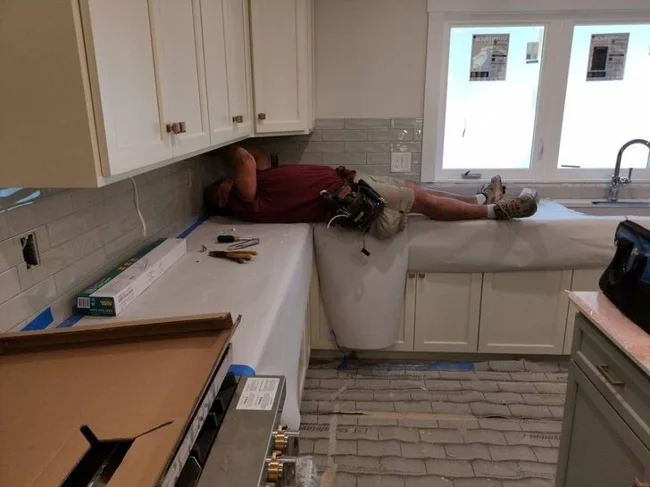 5. "Применяй ум, а не силу. Мой коллега всегда придумывает самый удобный способ установки светильников под кухонными шкафчиками"