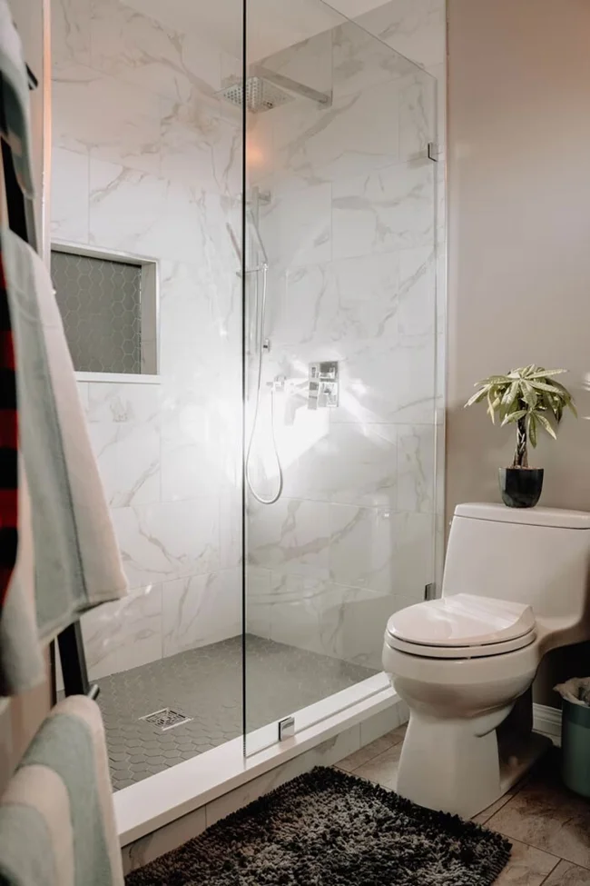 "Стеклянные дверцы душа, особенно высотой во всю стену. Они красиво смотрятся, только когда на них нет ни единого пятнышка, а значит, в большинстве домов они основную часть времени будут смотреться ужасно".