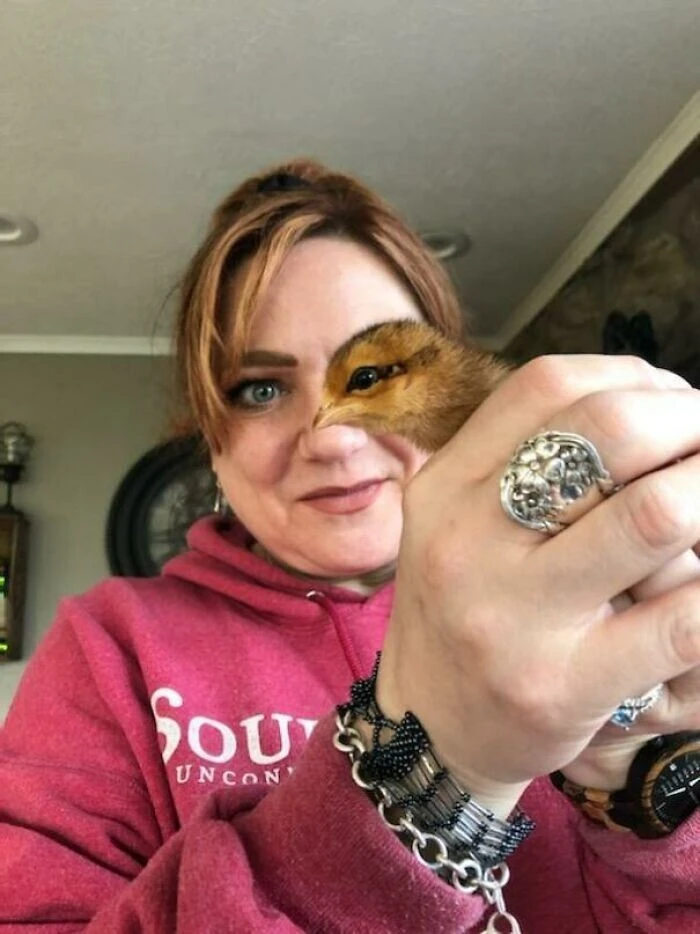 19. "Попросила мужа сфотографировать меня с одним из наших птенцов"