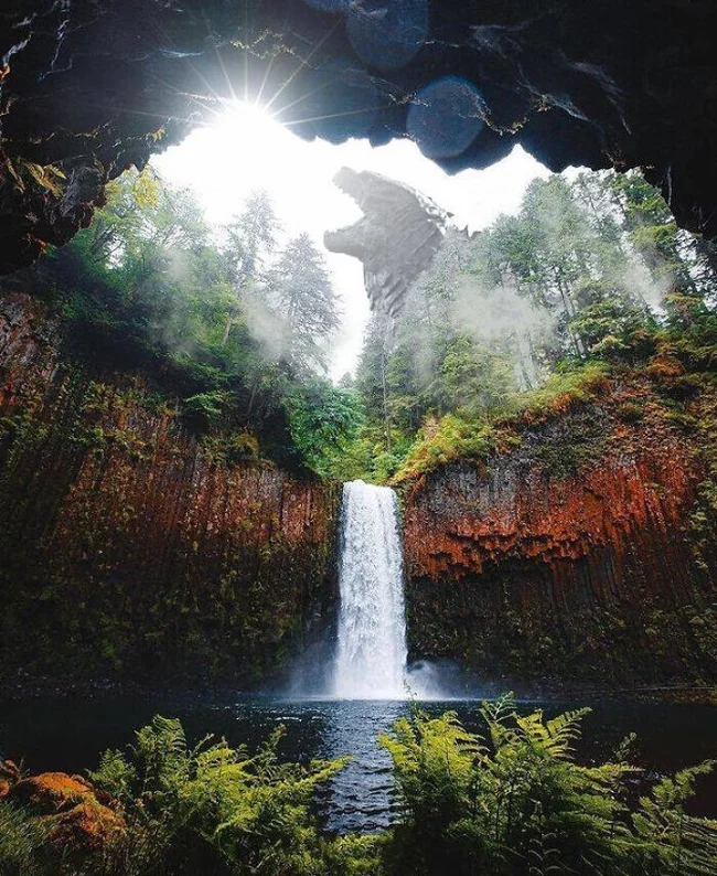 2. "Каждый раз, когда моя жена публикует в соцсетях какой-нибудь пейзаж, я вставляю туда Годзиллу"
