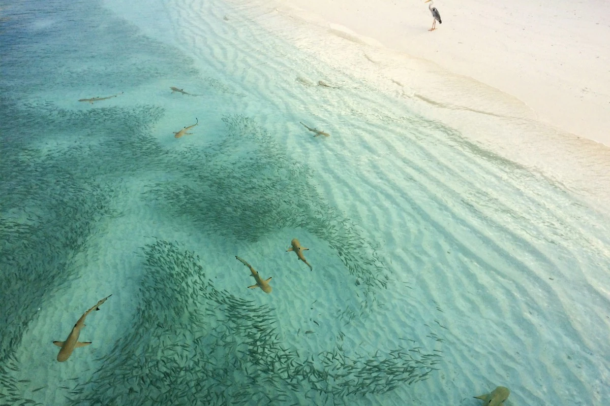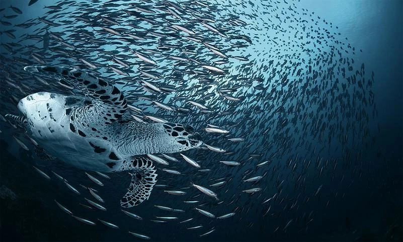Коллективная оборона от хищников. Косяк шпрот, Мальдивы.