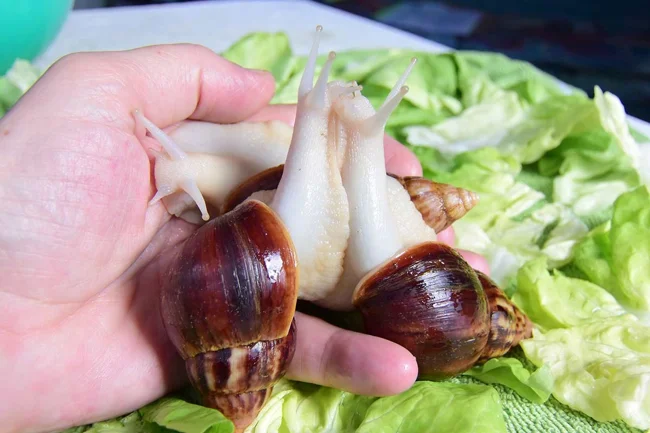 Тоже неплохой выбор если вам нужно бесполезное существо. Гигантская улитка (раковина до 20см) будет радовать глаз, оставлять разводы на всем, почему ползает.