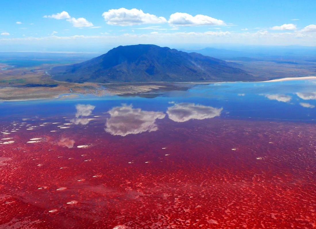 Вода из озера Натрон в Танзании буквально разъедает кожу, как только вы к ней прикоснетесь. Если хоть немного искупаться здесь - то кожа покроется волдырями и ожогами.