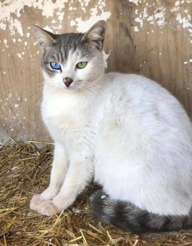 "Мой приятель сегодня сфотографировал на улице эту кошку с разными глазами. Никогда не видел такого сочетания"