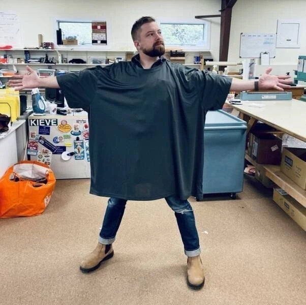 Так смотрится на человеке среднего телосложения футболка самого большого размера