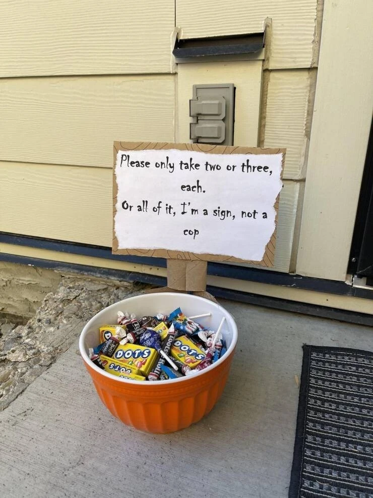 24. "Пожалуйста, берите по 2-3 штуки каждый. Или сразу все, я же табличка, а не полицейский"