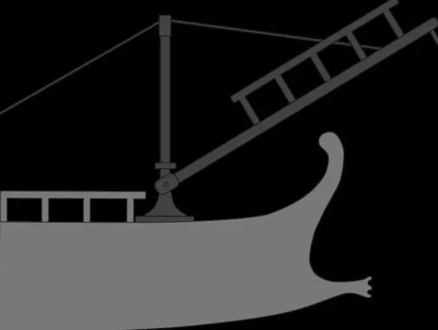 У римлян была сильная армия, и они великолепно сражались в море. Они изобрели корвус (Абордажный ворон) - штурмовой трап или мост, который применяли для абордажного боя, а также гарпакс - бревно, обитое железом и снабженное с обоих концов кольцами - его бросали катапультой, после чего он зацеплял вражеский корабль. Эти приспособления позволяли римлянам быстро перебираться со своей лодки на вражескую за считанные минуты.