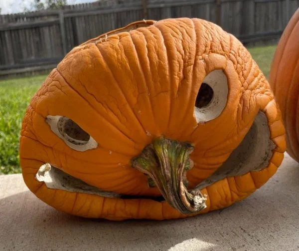 22. "Гниющая хэллоуинская тыква выглядит старой и дряхлой; когда я только вырезал ее, у нее были зубы и она улыбалась"